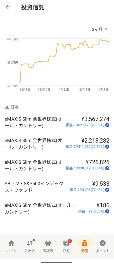 資産の主軸は「オルカン」です。安定的に複利の恩恵を受け、世界全体の成長に乗っかることで、着実に資産を増やしていけると考えたからです。